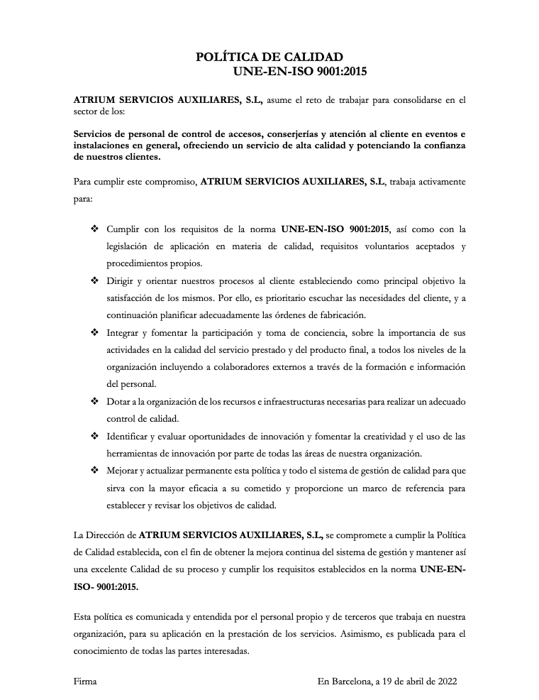 Especialistas en auxiliares de servicio, control de accesos, conserjería, azafatas y acomodadores. Con experiencia en todo tipo de eventos y clientes, ofrecemos soluciones personalizadas gracias a un equipo experto en coordinación y dirección de seguridad.